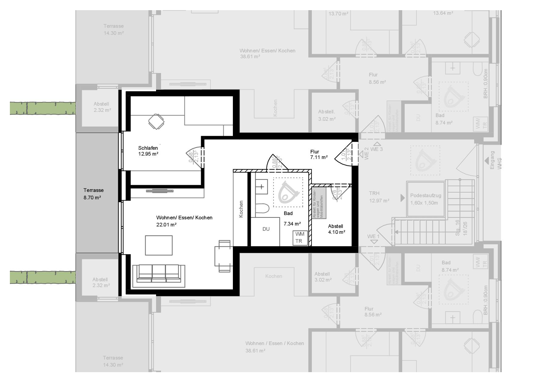 Der Wohnungsgrundriss ist individuell anpassbar, sprechen Sie uns an.