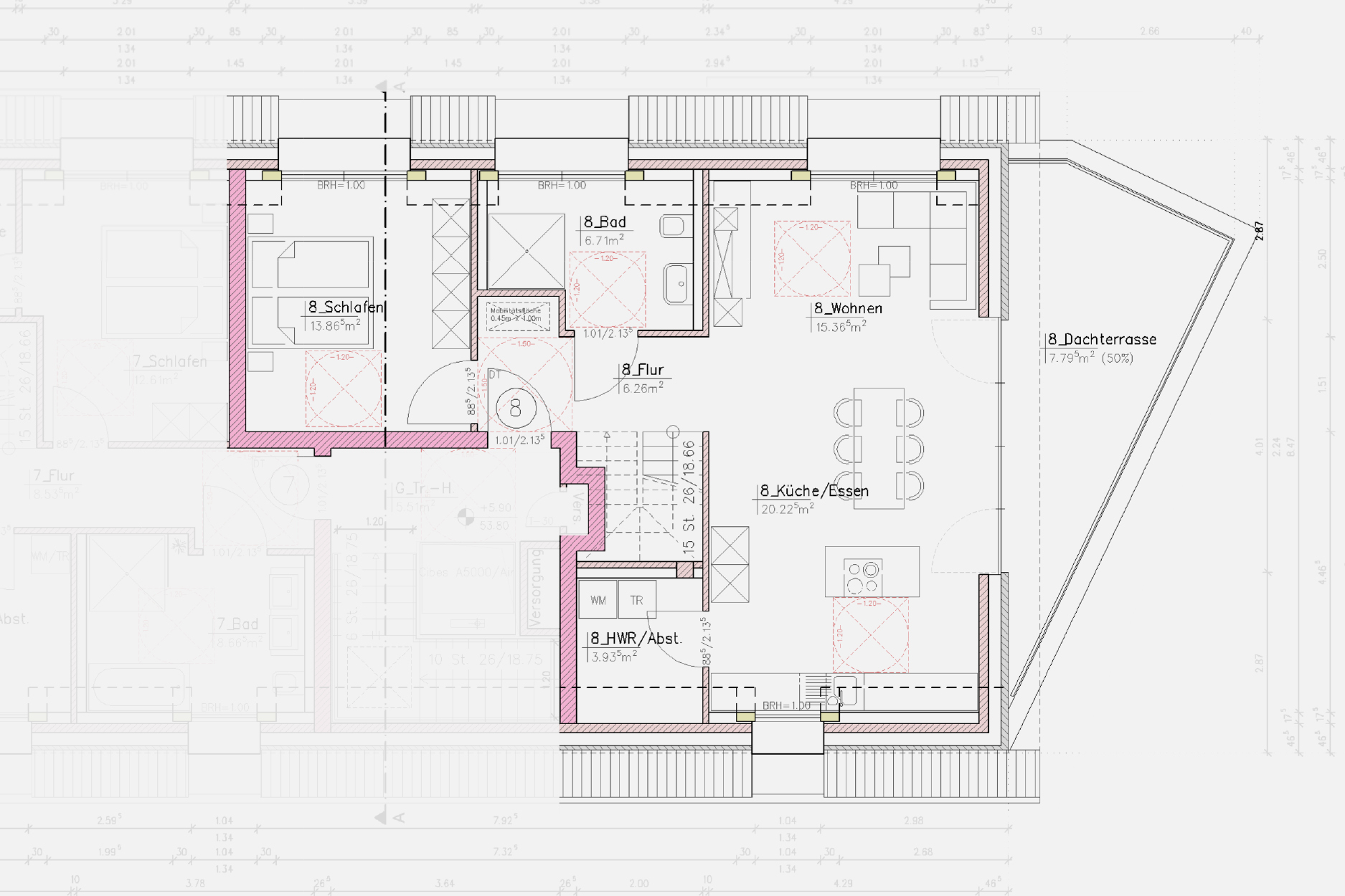 103 m² Wohnfläche, 3 bis 4-Zimmer-Maisonettewohnung, HWR, Tageslichtbad, 15,5 m² Dachterrasse, Kellerraum, inkl. 1 PKW Stellplatz